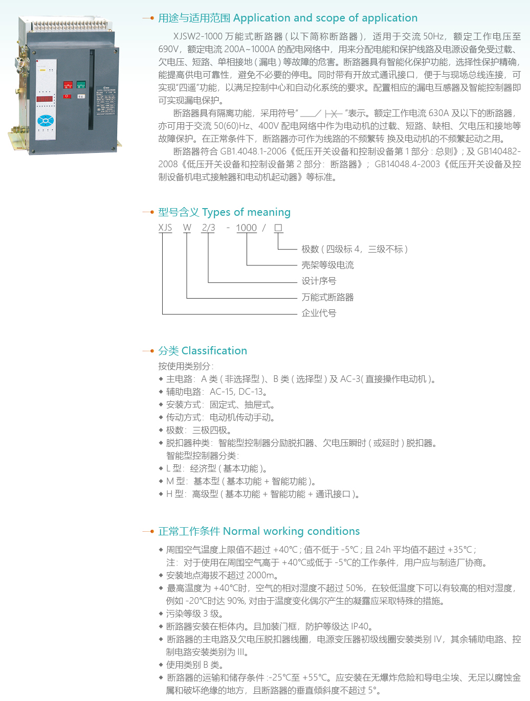 XJSW2系列萬能式斷路器